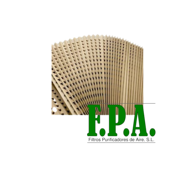 Filtro multicapa de papel kraft, robusto y con gran retención. Etapa intermedia en cabinas industriales.